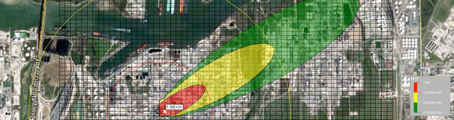 (Mevcut bulunan kimyasal depolama tankları, boru tesisatları, reaktör vb ekipmanlarda kazara kimyasalların açığa çıkması tehlikelerinin sonuç modellemeleri , BREEZE Software ile görülebilmektedir.)